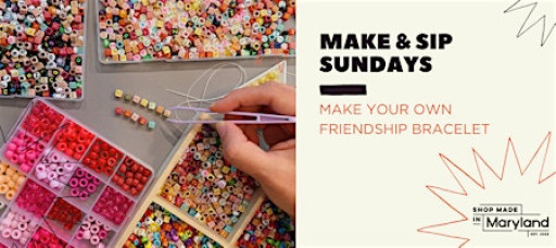 Get a free drink at our bar (we have coffee, beer, wine, cider, and more!) and make a friendship bracelet or two with us to close out your weekend. A perfect thing to do with a friend, or come to meet a friend too!