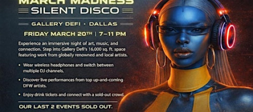 Wear wireless headphones and switch between multiple DJ channels. Discover live performances from top up-and-coming DFW artists. Enjoy drink tickets and connect with a sold-out crowd.