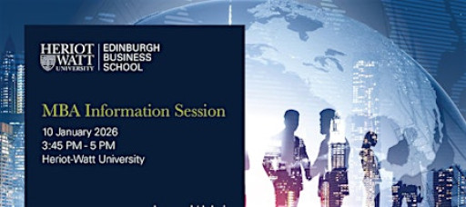 Edinburgh Business School is pleased to invite you to our MBA Information Session on Saturday, 10th January 2026, from 3:45 PM to 5:00 PM at our state-of-the-art campus in Knowledge Park.