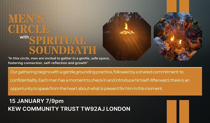After more than two and a half years of guiding sound baths at KEW COMMUNITY TRUST , and joining over fifty men’s circles across Portugal, Poland, and England, I’m grateful to now offer this gathering from my own heart.
