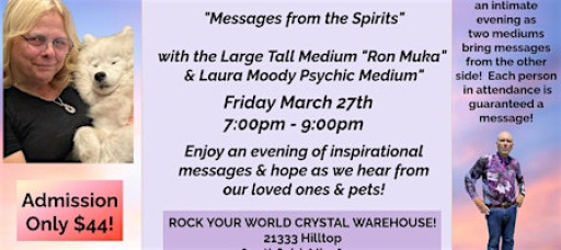 This event takes place in the Rock Your World Crystal Warehouse and space is limited. Each participant is guaranteed a message. Light refreshments are available.
