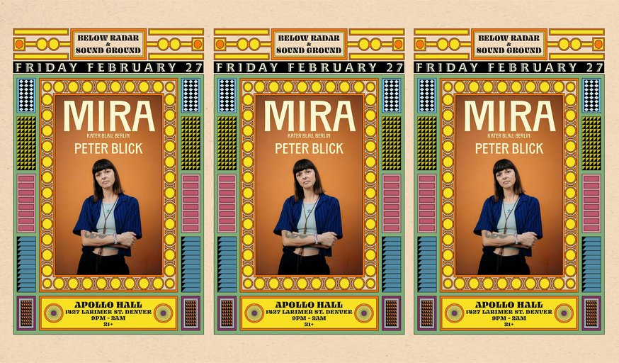Certain artists possess the keys to other worlds and the prowess to travel freely between them. Mira (Kater Blau, Berlin) is one such artist. Below Radar and Sound Ground are thrilled to announce Mira’s return to Denver on February 27th, 2026, with direct support from none other than Peter Blick.