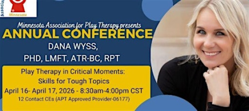 Join us in Minnesota for our annual PLAY THERAPY conference. This year, our presenters is Dana Wyss, PhD, LMFT, ATR-BC, RPT who will be speaking on the topic of Play Therapy in Critical Moments: Skills for Tough Topics in this two day conference!