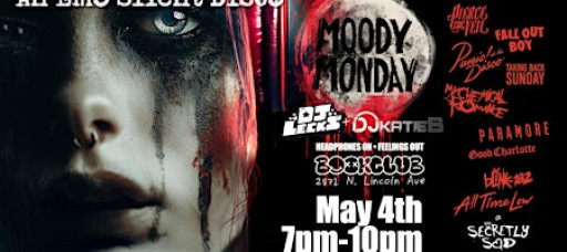 Secretly Sad presents "Moody Monday: An Emo Silent Disco." Brininging you the best emo/punk events across Chicago and greater Illinois! Join us Monday, May 4th at Bookclub Chicago for a night of moody madness!