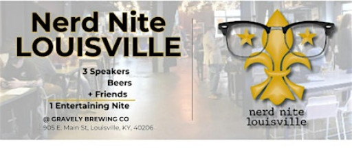 Join us for a night of nerdy fun at Nerd Nite Louisville! This in-person event will be held at Gravely Brewing Co. NEW LOCATION in NULU 905 E. Main St. LOU, KY 40206. If you've been you already know what to expect: three speakers, three unique topics, one engaging night of learning and libations. Have your questions ready and your minds open for a great experience, and we'll see you there!