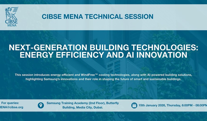 CIBSE MENA, in collaboration with Samsung Electronics, is pleased to invite members and industry professionals to a technical seminar on Next-Generation Building Technologies: Energy Efficiency and AI Innovation.