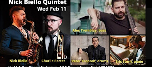Nick has shared the stage with world-class artists, such as Slide Hampton, Cedar Walton, and John Benitez. He has performed at the Pescara and Bussi Jazz Festivals in Italy, as well as the Taipei and Taichung Jazz Festivals in Taiwan, and other festivals across the globe. Nick's saxophone has been heard in notable NYC venues such as Birdland, Blue Note, Dizzy's, Lincoln Center, Cellar Dog, Smalls, Mezzrow, Smoke, Zinc Bar, The Kitano, Joe's Pub at the Public Theater, and Sony HallNick has recorded on hundreds of albums, from his own original projects to his work as a sideman for other artists. His debut album, "Vagabond Soul," released in 2017 on the Truth Revolution Recording Collective, features Phil Markowitz, John Benitez, Clarence Penn, Paul Jones, Andrew Renfroe, and Vincent Lionti. “Between Light and Shadow”, a collection of original compositions for the chordless trio format, was released in May of 2024 on La Reserve Records and features Biello’s working trio of Alex Tremblay on bass and Peter Kronreif on drums. His third album as a leader, “New America”, combines the rhythm team of Tremblay and Kronreif and adds the formidable musicianship of trumpet virtuoso Charlie Porter and the eminent pianist George Colligan.
