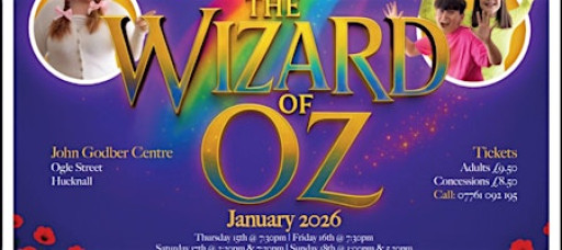 Hucknall lovelace threatre group \nJohn godber centre \nHucknall \nFamily panto \nWizard of oz \n5.30 pm