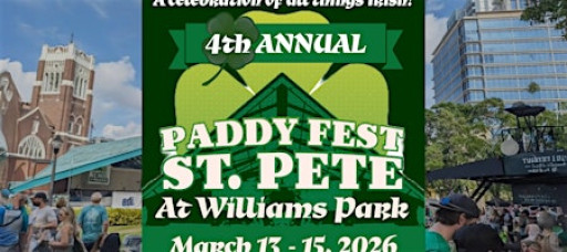Paddy Fest St. Pete is the city's largest annual St. Patrick's Day celebration featuring incredible live music featuring Derek Warfield & the Young Wolfe Tones, Seven Nations, The Byrne Brothers, the world champion City of Dunedin Pipe Band & more! The annual 'celebration of all things Irish' also hosts a variety of Irish-inspired activities with traditional Irish dancers, bagpipers, food trucks with corned beef and cabbage, a huge kids' zone, local vendors, and a 21+ VIP tent with Irish whiskey tastings & guinness on tap.