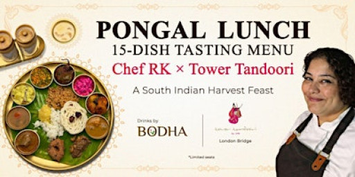 Celebrate Pongal with a special Sunday lunch supper club in London, hosted at Tower Tandoori, a heritage restaurant with over 40 years of history. This one-off event brings together Chef Ranjini, a rising South Indian chef in London, and Bodha Drinks, known for curating non-alcoholic drinks designed to pair with food.