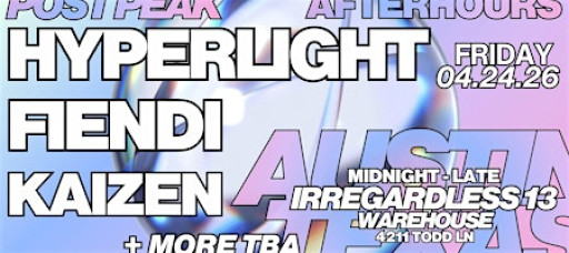 POST PEAK AFTERHOURS: HYPERLIGHT, FIENDI, KAIZEN at Irregardless Warehouse