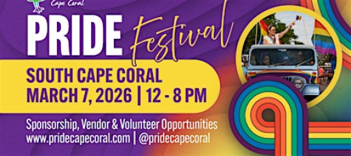 Join PRIDE Cape Coral for the Annual Pride Festival in Cape Coral, Florida, a vibrant celebration of love, unity, and togetherness. This energetic event brings people from all walks of life together to enjoy live entertainment, local vendors, food, art, and engaging experiences in a lively, celebratory atmosphere.