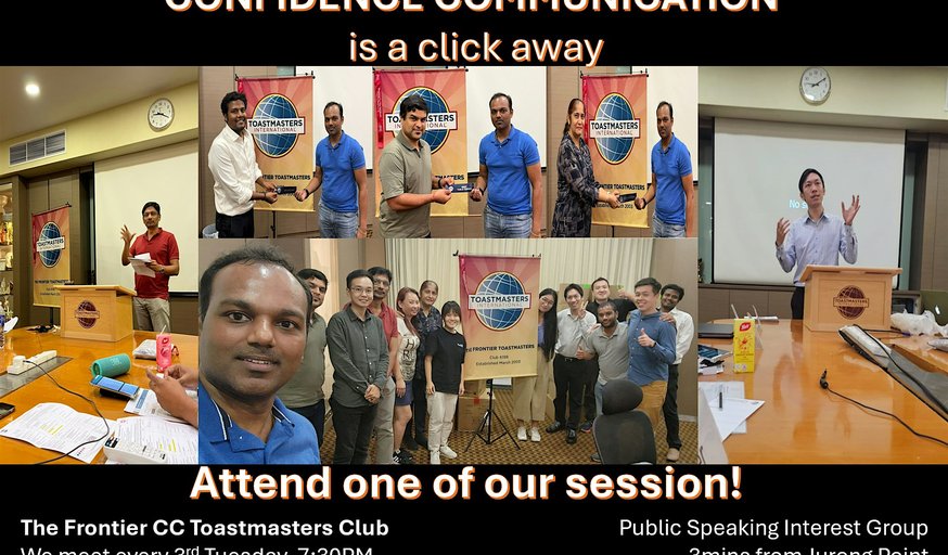 Boost your confidence with live speech practice! Join us at Frontier Toastmasters—conveniently located near Jurong Point. Every 3rd Tuesday