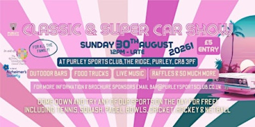Get ready for a fun-filled day out at the Purley Sports Club! Check out stunning classic cars and jaw-dropping supercars, all while enjoying a fantastic family-friendly atmosphere live music, food trucks, outdoor bars, raffles & bouncy castles.