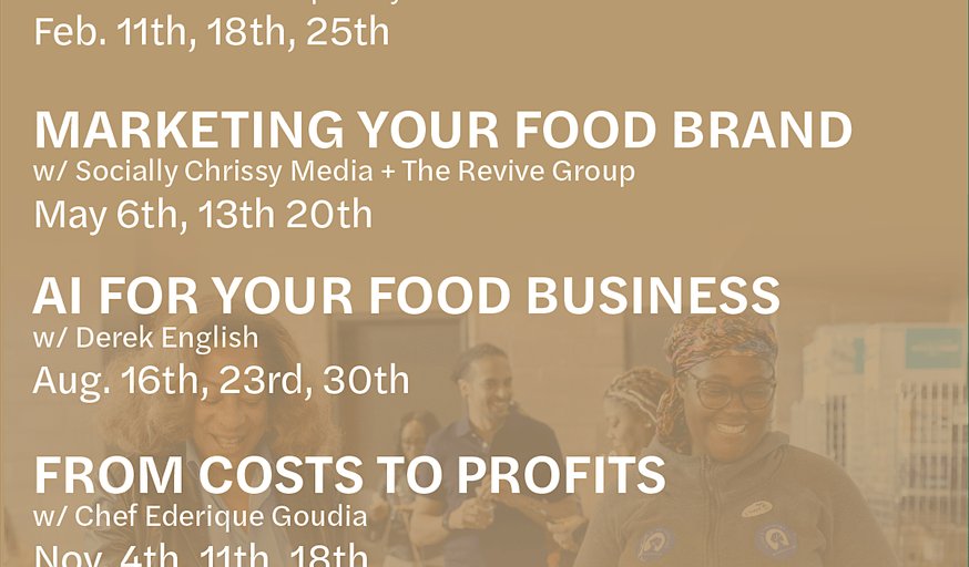 The Quarterly Drop-In Series is a free, three-week workshop series designed for food entrepreneurs, caterers, restaurateurs, farmers, and food brands who want to strengthen their operations and prepare for what’s next.