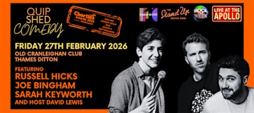 In February we have the return of TV's Russell Hicks, Joe Bingham, and our headliner is comedy powerhouse Sarah Keyworth! David Lewis returns to Thames Ditton to MC!