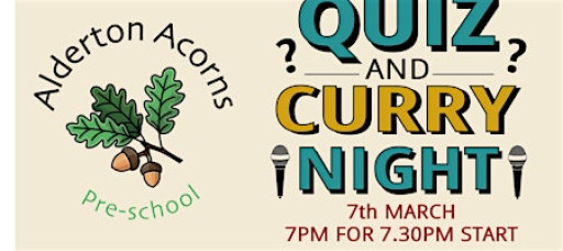 Get ready for an unforgettable evening at our Quiz & Curry Night in support of Alderton Acorns Preschool! Gather your team of six and enjoy a delicious spread of homemade curries (vegetarian options* included) and desserts, all lovingly prepared by our committee and community. Try your luck in our grand raffle, featuring fantastic prizes from local suppliers. Drinks will be available at our bar, offering both alcoholic and non-alcoholic options. Tickets are just £21.79 per person, so book your table of 6 today and help support this wonderful cause!