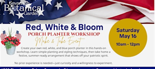 Join us for a creative, garden‑inspired workshop where you’ll design your own red, white, and blue patriotic porch planter from the ground up. This hands‑on session walks you through everything you need to know—how to choose the right plants for color, texture, and long‑lasting summer performance; how to combine them for balance and visual impact; and the simple planting techniques that make a container look full, vibrant, and professionally styled.