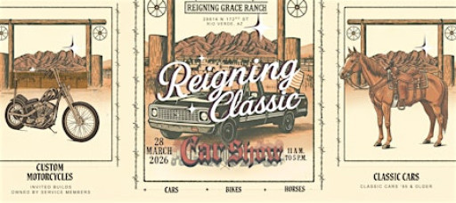Feel like a cowboy in your classic car - out where the desert meets the horses. Let’s make it real and ride for our veterans and first responders! The Reigning Classic Car Show brings together classic cars, custom motorcycles, and community for a day dedicated to supporting our heroes!