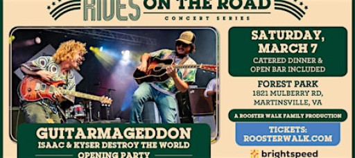 The opening party will take place at the Forest Park Country Club in Martinsville, VA. All ticket holders will receive a catered dinner and open bar (liquor/beer/wine). When you buy the season pass ($150), you get free entry to this show plus free entry to at least five more concerts in 2026. That's at least six shows for only $150!