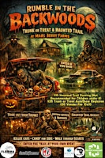 Get ready for a spooky good time at the "Rumble in the Backwoods". This is a donation-based Haunted Walk through Mars Berry Farms and a Trunk or Treat Auto Show hosted by Florida Freestyle Events. This is an awesome in-person event perfect for friends and family looking for some spooky adventure.
