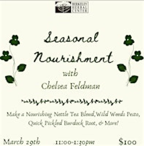 This class focuses on the return of Spring and all its green vitality. This session will be especially hands-on, with less lecture and a stronger focus on practical medicine-making and seasonal nourishment. We’ll work with deeply nourishing and cleansing plants through recipes such as: