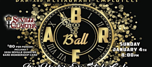 The Biggest Bar and Restaurant Employee Event of the Year Returns! Have your Bar/Restaurant/Nightclub Holiday party with us as we celebrate \New Year's Eve Sunday, January 4, 2026, from 8pm-2am. Seville Quarter will be featuring a great line up of entertainment featuring: an All Star DJ Show Case in Phineas Phogg's, will feature live entertainment! We will also feature a FREE COMPLIMENTARY DREAM WELL in all rooms, and a lavish Cocktail Buffet and Breakfast at Midnight! We'll get you to Seville Quarter! Dress to Impress! Black Tie Preferred: (NO JEANS). For the special BARE discount phone Randall's Formal Wear at (850) 432-8246 or Gents Formal Wear at (850) 434-3272 or 969-0397. Tickets may be purchased on Eventbrite or go to Sevillequarter.com. For group sales discounts of 20 or more, please emailBuck@rosies.com.