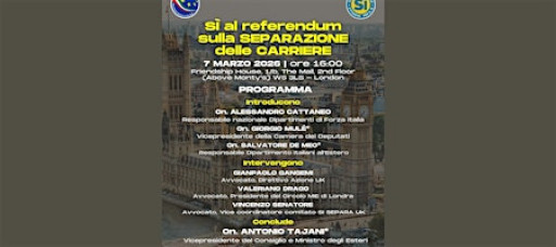 Il Circolo MIE di Londra, insieme al Comitato Nazionale “Cittadini per il SÌ”, organizza un incontro pubblico a sostegno del SÌ al referendum sulla separazione delle carriere nella magistratura.