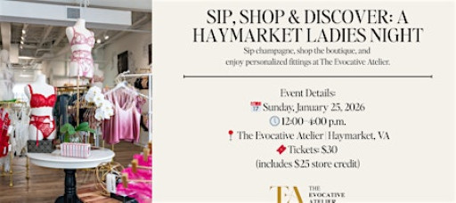 Join us for Sip, Shop & Discover: A Haymarket Ladies Night—an exclusive after-hours boutique experience at The Evocative Atelier designed just for the Ladies of Haymarket.