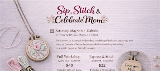 Sip, Stitch & Celebrate Mom: Embroidery Necklace Workshop