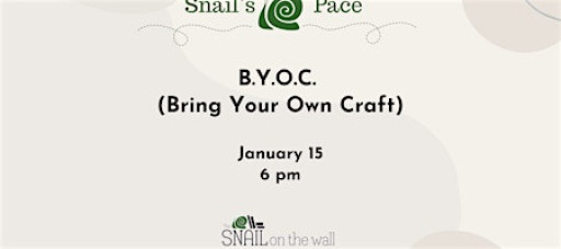 Join us for a low-key, laid-back evening of crafting and community. This event is B.Y.O.C. (Bring Your Own Craft). Suggested crafts are knitting, crochet, needlepoint, small painting projects, or anything that can be done in your lap or with limited table space. Bring all your materials, please.