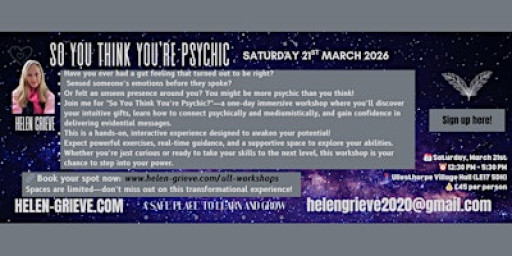 - Join me for "So You Think You’re Psychic?"—a one-day immersive workshop where you’ll discover your intuitive gifts, learn how to connect psychically and mediumistically, and gain confidence in delivering evidential messages.