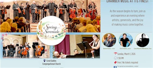 Spring Serenade invites you into an evening of chamber music that celebrates collaboration, artistry, and the shared joy of making music at the highest caliber. This concert is part of the Alhambra Orchestra’s For the Love of Music initiative, a vision that brings together the orchestra’s professional musicians with distinguished guest artists from Miami’s vibrant musical community to elevate both repertoire and performance.