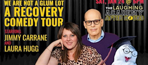 🌟 We Are Not a Glum Lot: A Recovery Comedy Tour, stars LAURA HUGG and JIMMY CARRANE as they take kind, loving, and hilarious aim at 12-step culture and what it's like to be “in the rooms.”