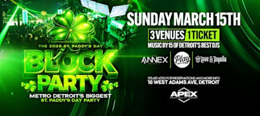 St.Paddy's Day Block Party on Sunday, March 15- 3 venues for 1 ticket!..