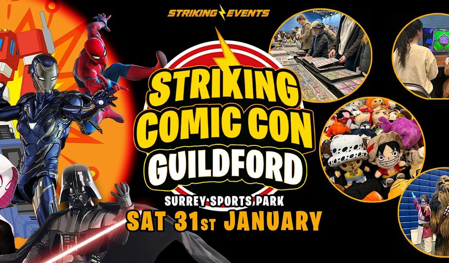 Opens 10am to 4pm. Come and spend the day immersed in Comic Con culture with lots of people dressed as their favourite characters. We also have Playstation 5 and Nintendo Switch 2's to play, Green Screen photo booth, movie cars on display, fun photo areas, costume competition and lots of exhibitors selling everything from Star Wars to Pokemon. A family friendly, great value for money event where everyone is welcome :)