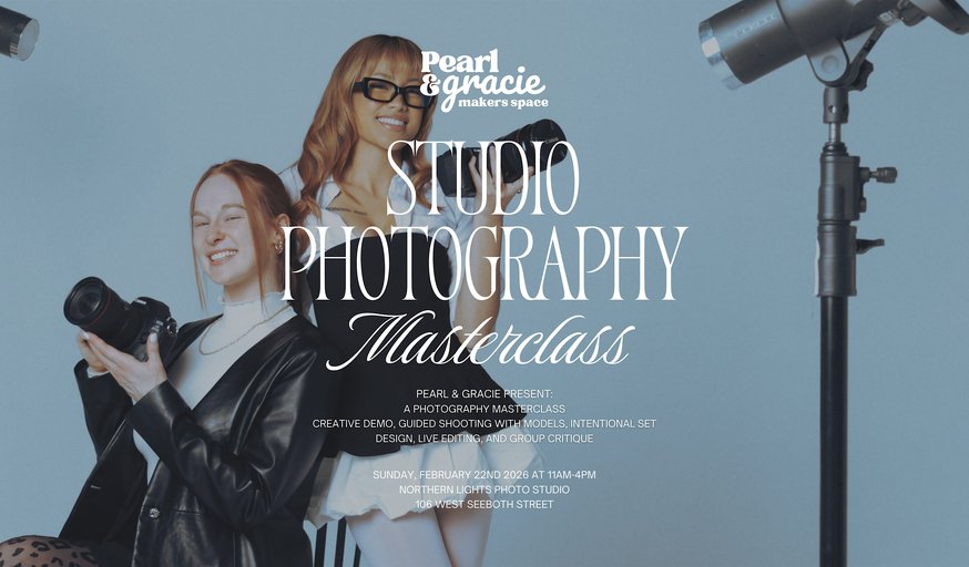 We invite you to join Pearl & Gracie Makerspace for an immersive Studio Photography Masterclass at Northern Lights Photo Studio, located in the heart of downtown Milwaukee. This hands-on educational experience is designed for photographers looking to elevate their studio photography work through intentional shooting, creative direction, and collaborative learning. Limited spaces available.