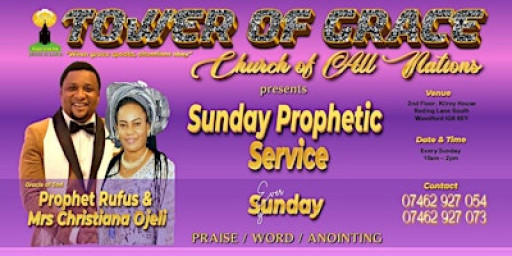 Join us for a joyful Sunday Service where prophetic wisdom flows seamlessly from the oracle of God. Experience major divine transformations under the guidance of Prophet Rufus Ojeli and Mrs. Christiana Ojeli at the Tower of Grace Church of All Nations (TGCAN). As a purpose-driven church and a beacon of hope, this is an event you cannot afford to miss. Lives will be profoundly changed in the name of Jesus Christ, our Lord.