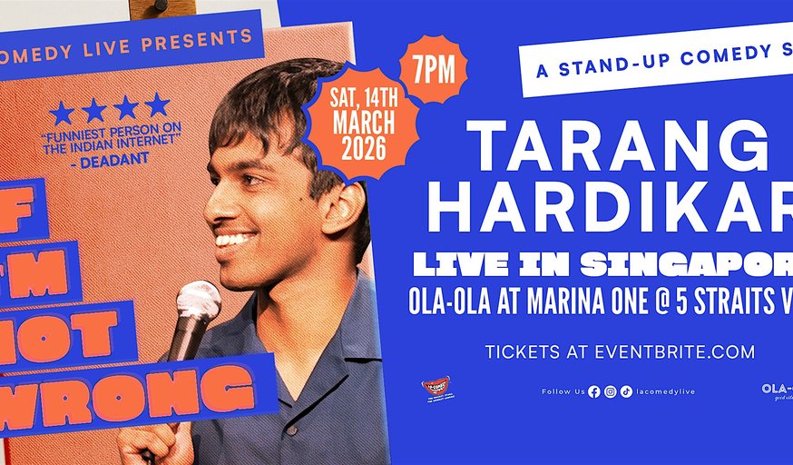 Get ready for a night of quirky, sharp, and laugh-out-loud comedy as Tarang Hardikar brings his latest stand-up special, If I'm Not Wrong, to Singapore on Saturday, March 14, 2026 at Ola Ola Restaurant & Bar.