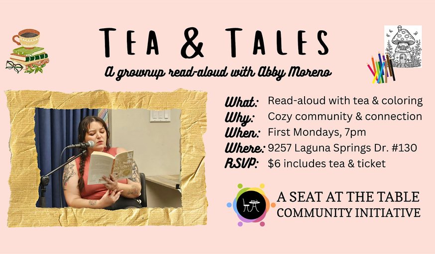 Join ASATT Community Initiative volunteer Abby Moreno for a peaceful and connective evening. As you listen to her read, you can sip hot or iced tea and use our provided supplies to color or bring your own crafts or silent fidgets.