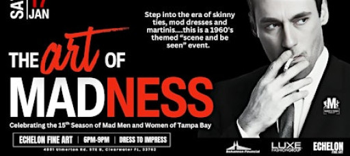 Welcome to “The Art of Madness" – a 1960’s Celebration to honor the original Mad Men and Women of Tampa Bay! Hosted at Echelon Fine Art Gallery, this evening is a step-back-in-time to the 60’s when women lived in pearls and where men sipped martinis after work.