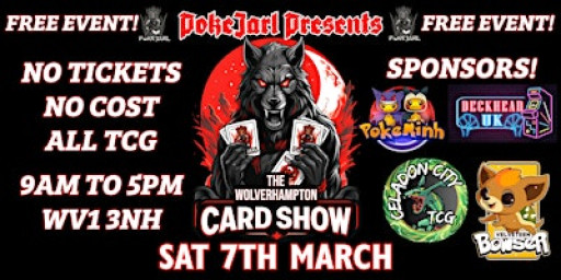 The Wolverhampton Card Show is a lively, community-driven event that brings together collectors, hobbyists, and traders from across the Midlands & beyond for a full day dedicated to your favorite trading cards and pop-culture collectibles. Hosted in a spacious, easily accessible venue, the show offers a welcoming atmosphere where seasoned collectors and curious newcomers can explore hundreds of tables filled with vintage treasures, modern hits, sealed products, and rare chase cards. All at the cost of parking.