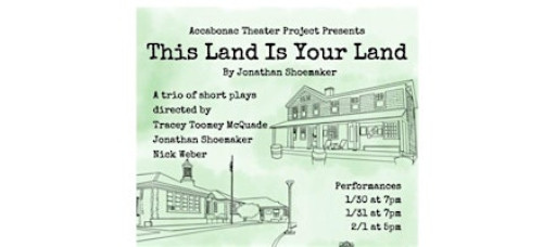 Accabonac Theater Project is pleased to announce its inaugural production, THIS LAND IS YOUR LAND. The show is comprised of three interconnected short plays set in the heart of contemporary Springs, NY — General Store, Bake Sale and Mystery Art.