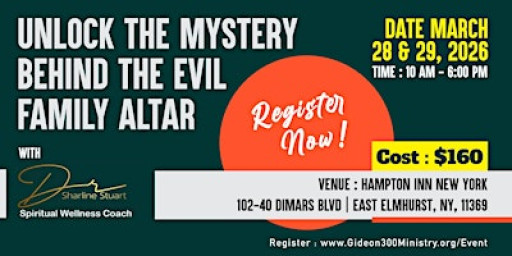 Join Dr. Sharline Stuart for a powerful two-day conference designed to expose, confront, and dismantle the influence of evil family altars operating behind generational struggles, spiritual oppression, and delayed destinies.
