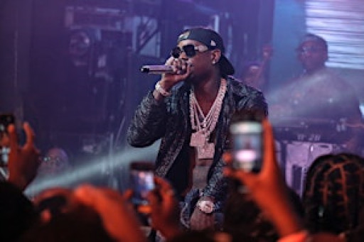 This is a real Vegas hip-hop crawl — loud music, party bus energy, and a crowd that came to turn up.