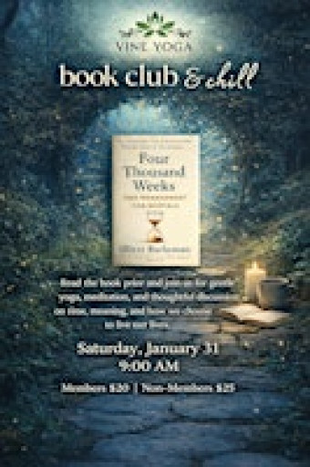 Vine Yoga Book Club reads Four Thousand Weeks. A mindful look at time, presence, and what matters.