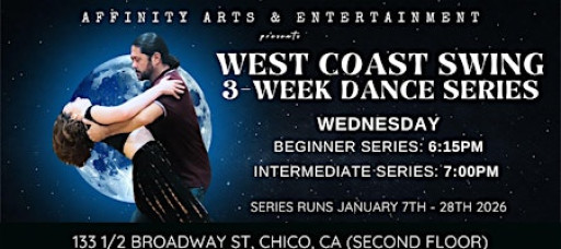 Start the year strong by learning a new dance! Join our 3-week West Coast Swing Series every Wednesday beginning January 7th. Level 1 (beginner-friendly) starts at 6:15pm, followed by Level 2 at 7:00pm. Absolute beginners are welcome and no partner is needed! 💃🕺