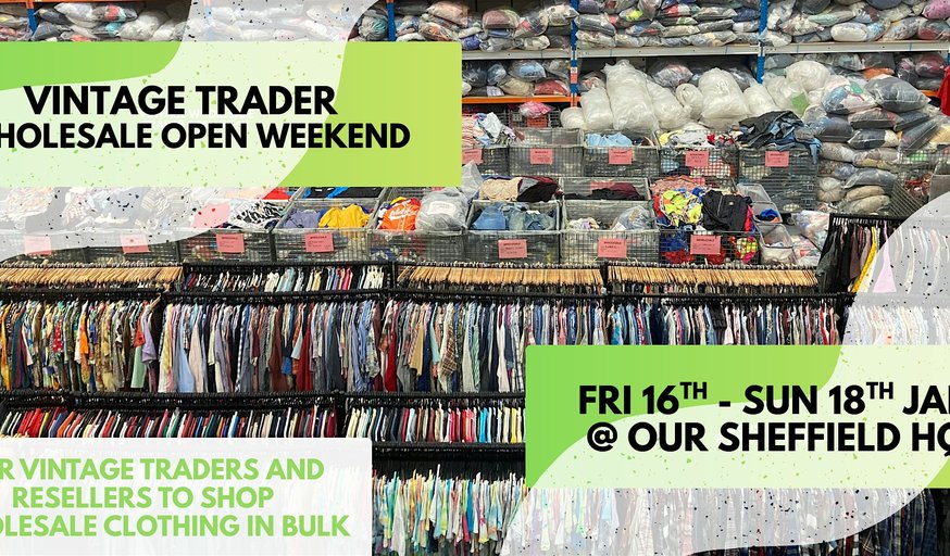 A wholesale open day at our Sheffield HQ for traders to shop, check out our stock and discuss supplying your business with vintage in bulk. For this event we will reduce the minimum spend to just £100 (usually £300) so if you've not used us before or you're a trader just starting out, this is a great way to try us out without a big commitment.