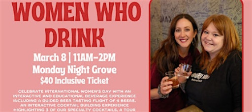 Celebrate International Women’s Day with a guided, interactive beverage experience at Monday Night Grove. Women Who Drink is a curated afternoon designed to educate, empower, and raise a glass together.